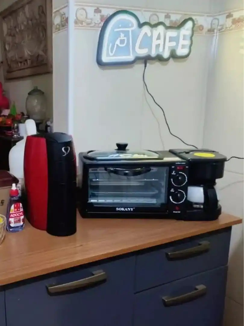 "No sabía que lo necesitaba hasta que lo tuve. La cafetera es rápida y el café sale delicioso. Uso la parrilla casi todos los días para hacer arepas o calentar pan. El horno funciona bien para porciones pequeñas. Ideal para espacios pequeños como mi apartaestudio."